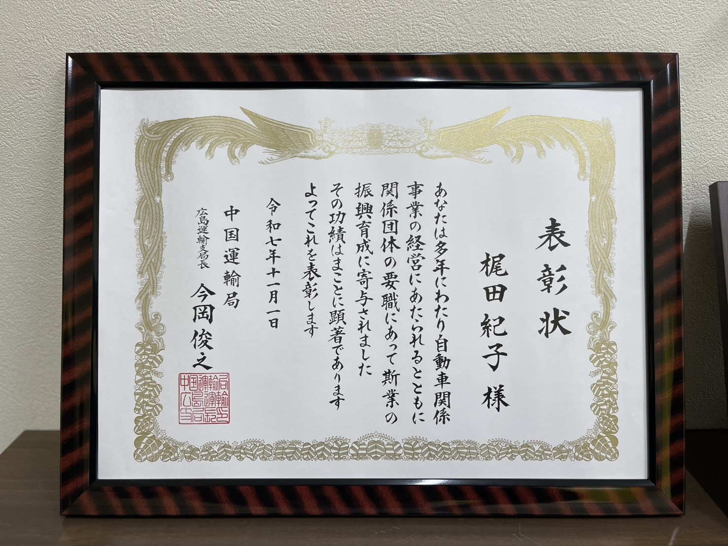 2025.11.13 2025年11月4日「中国運輸局広島運輸支局長表彰」をいただきました